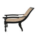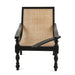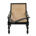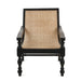 Relax in timeless elegance with this British Colonial-inspired armchair. Its solid wooden frame and intricate rattan weave create a durable and visually striking piece. The curved backrest and wide arms offer optimal comfort, making it the perfect spot to unwind. The rich, dark finish adds a touch of sophistication, making this armchair a captivating addition to any home.