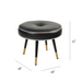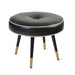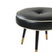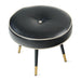 This exquisite stool is a captivating fusion of mid-century modern aesthetics and timeless elegance. Its circular, upholstered seat, adorned with a classic button-tufted design, exudes a sense of sophistication and refinement. The tapered, wooden legs, accented with gleaming gold tips, create a striking contrast and a touch of luxurious opulence. This versatile piece, adaptable as a footstool, extra seating, or even a petite table, is a functional and stylish addition to any interior space, elevating its ambiance with a touch of understated glamour.
