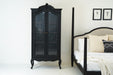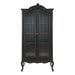 This French Provincial inspired display cabinet is a captivating piece of furniture that exudes timeless elegance. Its arched top, adorned with intricate carvings, creates a sense of grandeur, while the glass doors offer a glimpse of the treasures within. The cabinet's curved, fluted legs, reminiscent of Louis XVI style, add a touch of sophistication. The dark finish lends a sense of mystery and intrigue, making this cabinet a focal point in any room. With its ample storage space and exquisite design, this piece is perfect for showcasing cherished possessions and adding luxury to your home.