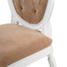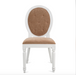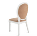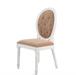 This exquisite accent chair is a testament to timeless elegance. Its oval backrest, adorned with intricate button-tufted detailing, creates a visually captivating focal point. The fluted, tapered legs add a touch of classic sophistication, while the curved seat provides a comfortable and inviting seating experience. The chair's clean finish and delicate ornamentation lend a sense of refined luxury, making it a perfect addition to any space seeking a touch of vintage charm.