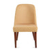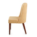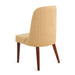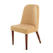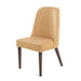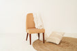 This accent chair showcases a harmonious blend of modern design and timeless appeal. The curved backrest and tapered wooden legs create a visually striking silhouette, while the plush upholstered seat and backrest offer exceptional comfort and support. The intricate stitching on the upholstery, clean lines and minimalist design makes it a versatile piece that seamlessly complements a variety of interior styles. Whether placed in a dining room or living space, this chair is sure to add elegance to any environment.