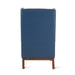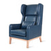 A luxurious armchair featuring a tall, winged backrest that provides exceptional head and neck support. The deep, cushioned seat and wide arms offer unparalleled comfort, making it the perfect place to relax and unwind. The sleek wooden legs provide a modern contrast to the classic silhouette, adding a touch of sophistication. This elegant armchair is a statement piece that will elevate any living space and offer a relaxing seating experience.